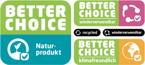 Nobody is perfect – auch unsere Artikel nicht … dennoch möchten wir zusammen mit Ihnen und unserer Produktlinie BETTER CHOICE einen ersten wichtigen Schritt in Richtung Umweltbewusstsein einschlagen. Entdecken Sie unser vielfältiges Sortiment und lassen Sie uns gemeinsam unsere Welt etwas besser machen.